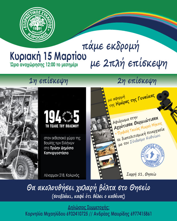 Μετά την προβολή θα ακολουθήσει ΕΛΕΥΘΕΡΗ ΒΟΛΤΑ για καφέ ή φαγητό στο Θησείο και επιστροφή το απόγευμα.